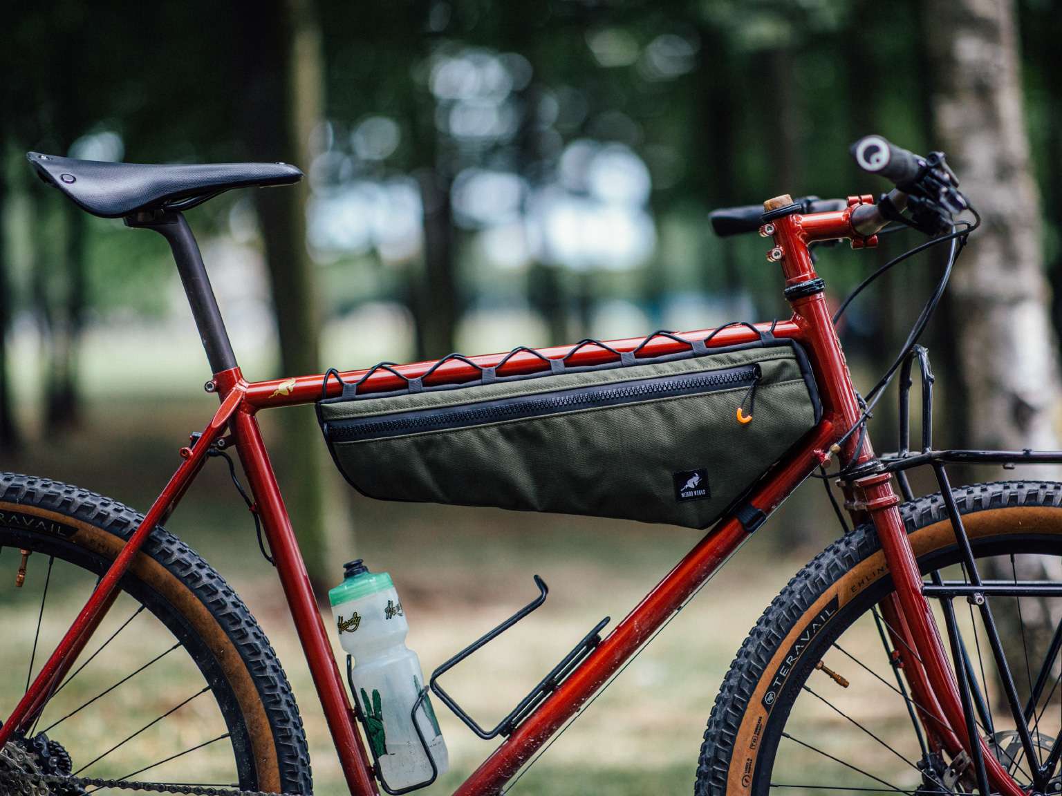 "Wizard Works' Framebagracadabra is a partial frame bag that's handmade in the UK with high quality materials and components. It comes in several sizes and in lots of colour choices, and you can even build your own custom look."